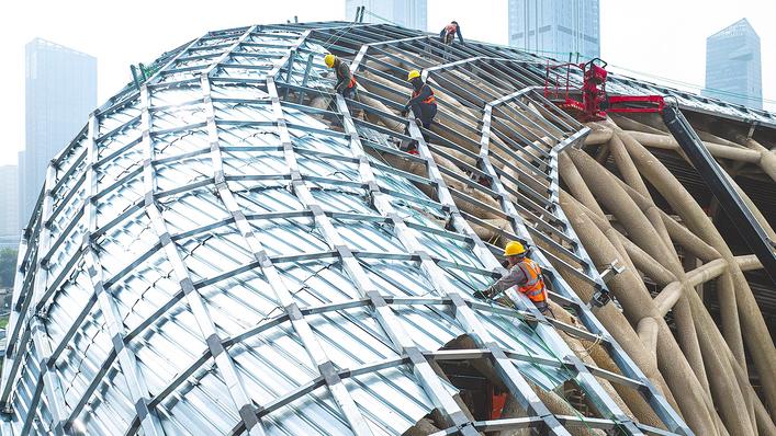 10月1日,中国第三局建筑部第三家公司的工人在武汉市瓦坎区的项目现场进行了建设工作。 (由新华社发布)