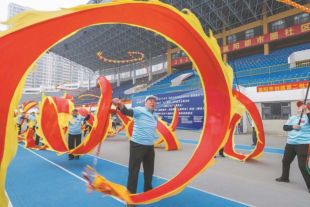 10月27日,健身爱好者在市体育场表演。当日,2025全民健身主题活动“搜谷节”(湖北分公司襄阳站)开幕。 400余名健身爱好者参加了本次活动,活动以“统一银发之力,展现白银时代风采”为主题。